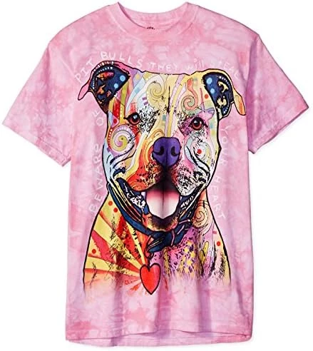 I’ve purchased several of these, all different colors. Yes, the same pit bull! Love the theme and the quality. Always get some kind of notice when wearing outside! T-shirt is is not “thin”, is tye-dyed -ish and fun to wear! Don’t get anything else than the the Mountain brand.