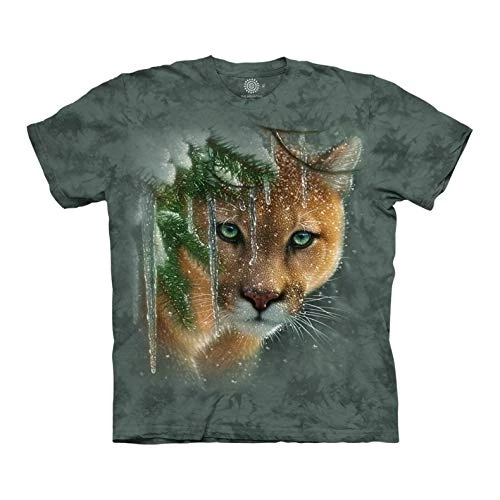 - UNIQUE AND STUNNING WINTERY T-SHIRT DESIGN: Frozen – A hunting cougar gazes through snow and frozen branches