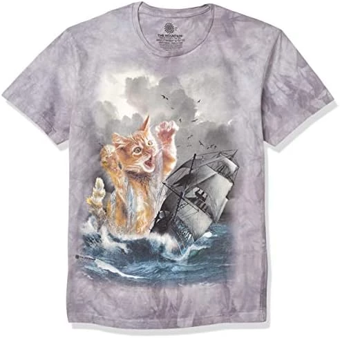 I get so many compliments on this shirt when I wear it out it’s unbelievable. I ordered one the first time looking (as with all my clothes) to have it be a bit bigger than I necessarily needed but WOW it was bigger! Or at least in length it was a bit too much— like a tunic. But hey, I sleep in t-shirts so it basically became my usual “nightgown.” Lol. Of course I wanted to have one to wear OUT as well so I did order another one in a size smaller and it definitely is less giant. The length is still maybe a little long for some people but ok for me as I tend to wear leggings a lot; my leggins aren’t sheer but I still like it when the shirts I wear with them cover my bum anyways and the shirt definitely does. I’ve washed the bigger one a million times by now and the print has maybe faded a little, but I also ALWAYS dry my clothes on regular heat for a good 50/60 minutes and I usually don’t bother turning them inside out when washing either, so really, it’s pretty amazing that it hasn’t been destroyed completely by now. Haha~ The smaller/second one I ordered did have more of a red undertone to the print mostly in the ocean and clouds/sky. It was a little different but I don’t mind, as the slight difference in tone now helps me feel like I am wearing an at least SOMEWHAT different shirt when I change out of my “pajama shirt” into literally the same shirt (just a little smaller) to go out. Lol! Anyone who buys two of the same shirt really must love it, I’d think, so there you go! Awesome design that doesn’t fade easily and I love that they run a little large.