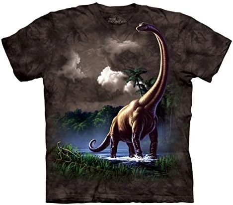 There are stories ‘based on true events’ and then there are simply true events. The following is a true event.As I was checking out at Home Depot (wearing upon my chest the docile herbivore, brachiosaurus), an employee emerged from amongst the shrubbery – 60-ish, female, in proverbial orange apron – needless to say, I immediately realized what had drawn her out from the safety of the shire – for eye contact was absent, save the brachiosaurus staring into her soul. Indeed, she instantly erupted into a chorus of praise from: “Wow, your shirt is outstanding” and “It’s like looking at an HDTV” to “It’s so big, but I’m not afraid of it because it eats plants” and “I can tell it’s real dye, the colors are amazing.”Clearly, this shirt reviews itself, I am only your guide on this particular journey through macaronicly Mesozoic & magnicaudate madness.Purchase for yourself and become a living, walking Disney World ride.Peace.