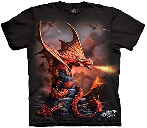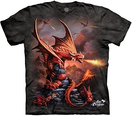The good: beautiful graphics, awesome colors. The not so good: the sizes are waaaaayyy off. I own a grey mountain shirt with a grey dragon, 3xl. Fits loose, no problem. But this red dragon shirt , both 3xl, and 4xl, fit too tight. I own about 30 other 3xl shirts that also fit fine. So I have to conclude that the issue is with how this shirt is made and sizes. I just ordered a 5xl in the hopes it will fit like a 3xl. With my luck watch it be a true 5xl and fit like a dress. I will edit this when I get it and let you know.Looking at other reviews with size issues, I think I know what is wrong. The shirts are youth sizes. Youth xl, youth 2xl, etc. That would explain why neck opening is smaller than normal.Oh, there is one more difference in the grey dragon shirt besides sizing. The grey dragon shirt is super soft material and supper comfortable. This shirt is a stiffer material and thicker. Still wearable, just not silky in feel like the grey dragon shirt.