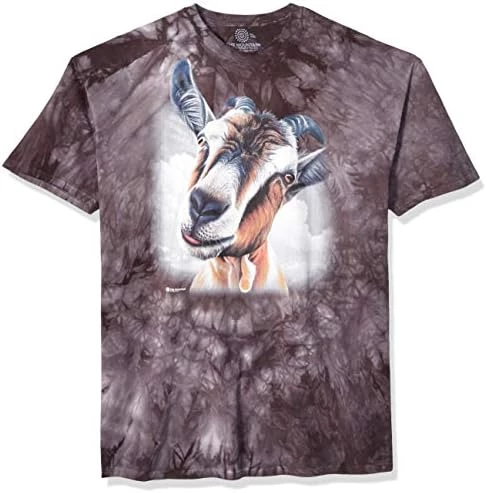 Goats are definitely the greatest of all time, and they know it. This Goat Head T-shirt is ideal for any goat enthusiast who wants to show their love for their favorite horned mammal. The art on this bold realistic top features the adorable and fun-loving face of a goat peering out at all that pass by. This animal-themed novelty tee is the ideal enhancement for any goat lover’s wardrobe. Manufactured in a socially responsible processes, The Mountain shirts like this will make a stylish and ecologically friendly addition to your epic clothing collection.