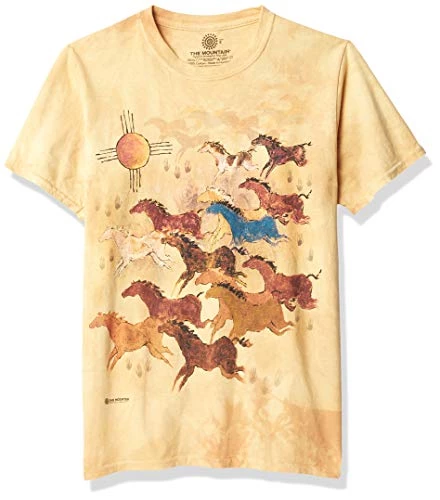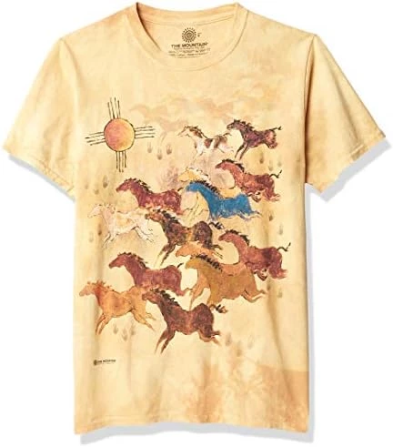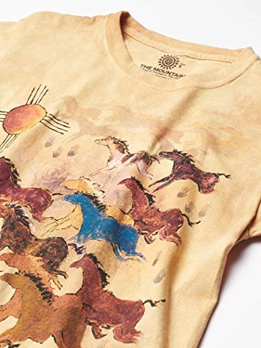 The Mountain garment dyed horses and sun graphic on men’s t-shirt All products produced by The Mountain will have a Mountain company stamp at the neck of the t-shirt, sweatshirt, hoodie, etc. If you receive a counterfeit product, please contact Amazon so they can take action against the counterfeiter and ensure you receive a genuine product.