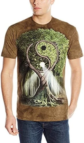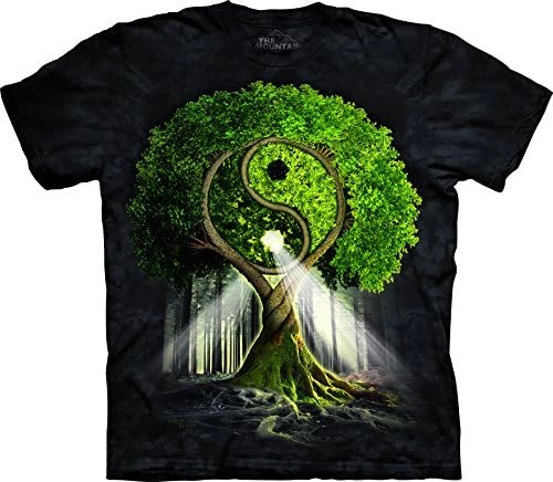 The Yin Yang Tree design on this T-shirt from The Mountain represents the juxtaposition of light and dark, two contrary forces that chase after each other and come together to create something whole, balanced, and interconnected. This unique graphic apparel features beautiful artwork by Michael McGloin that pops right out to bring equilibrium to your life. Bask in the sunlight that shines through the forest leaves on this shirt, depicting a fantasy-like tree that grows into the classic symbol of balance.